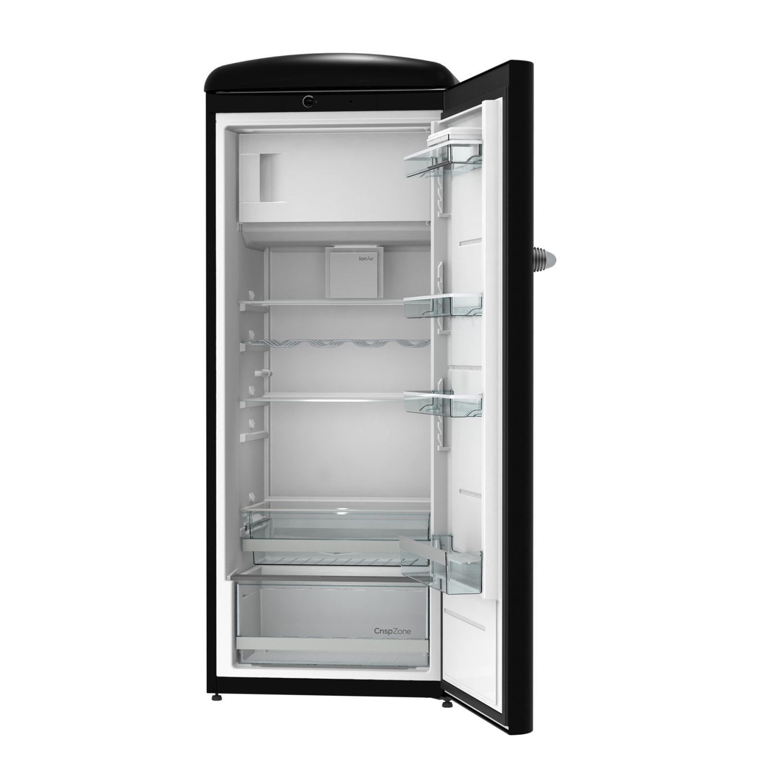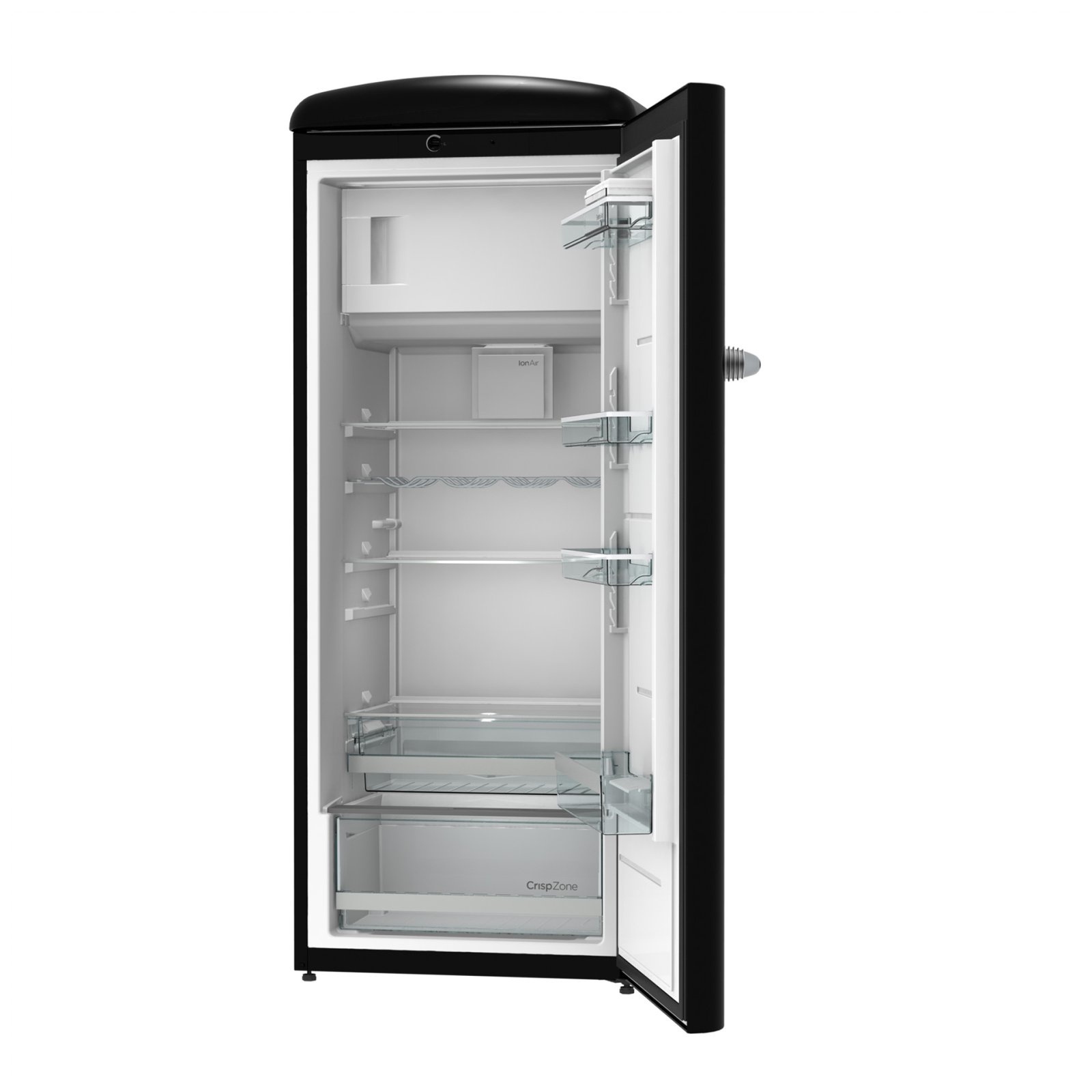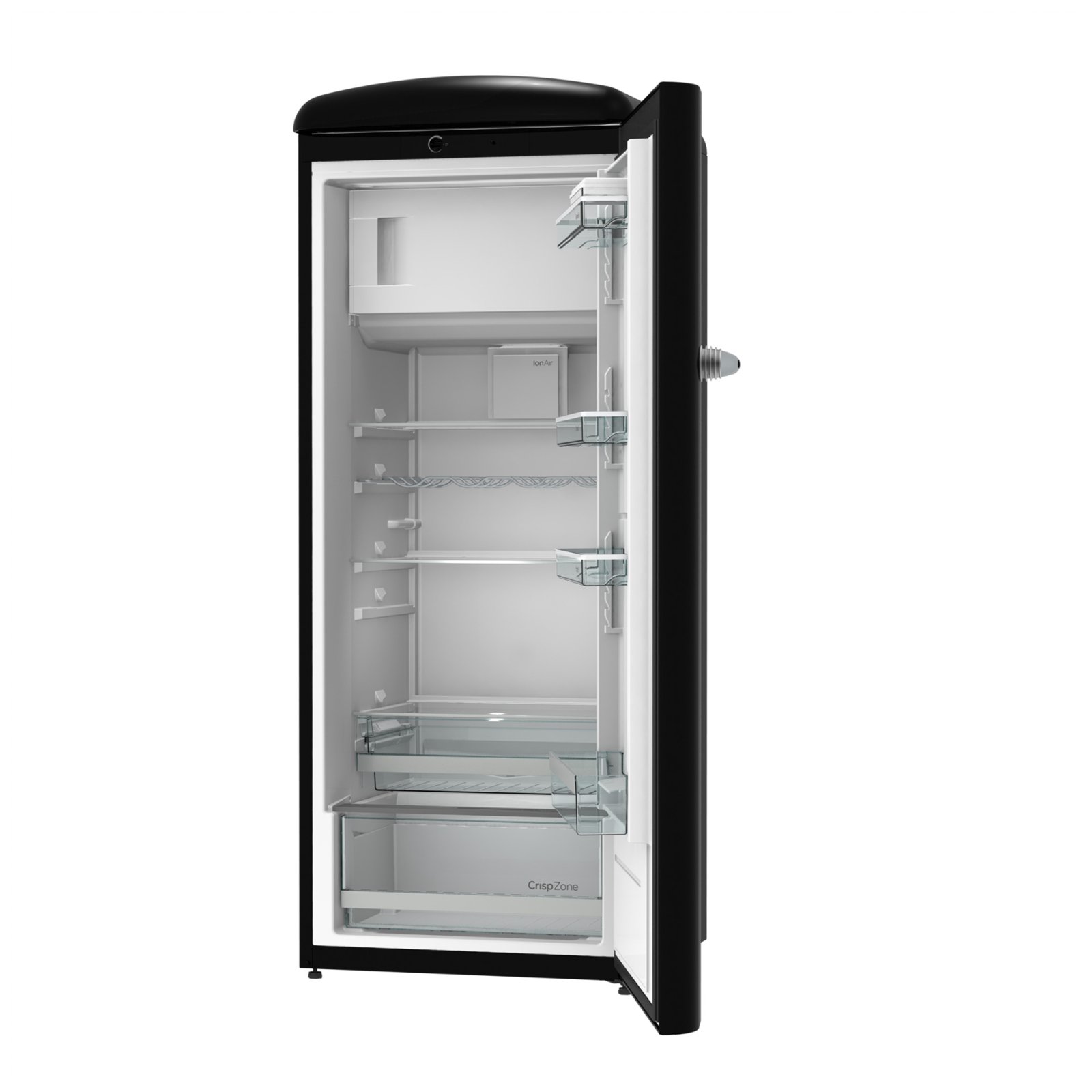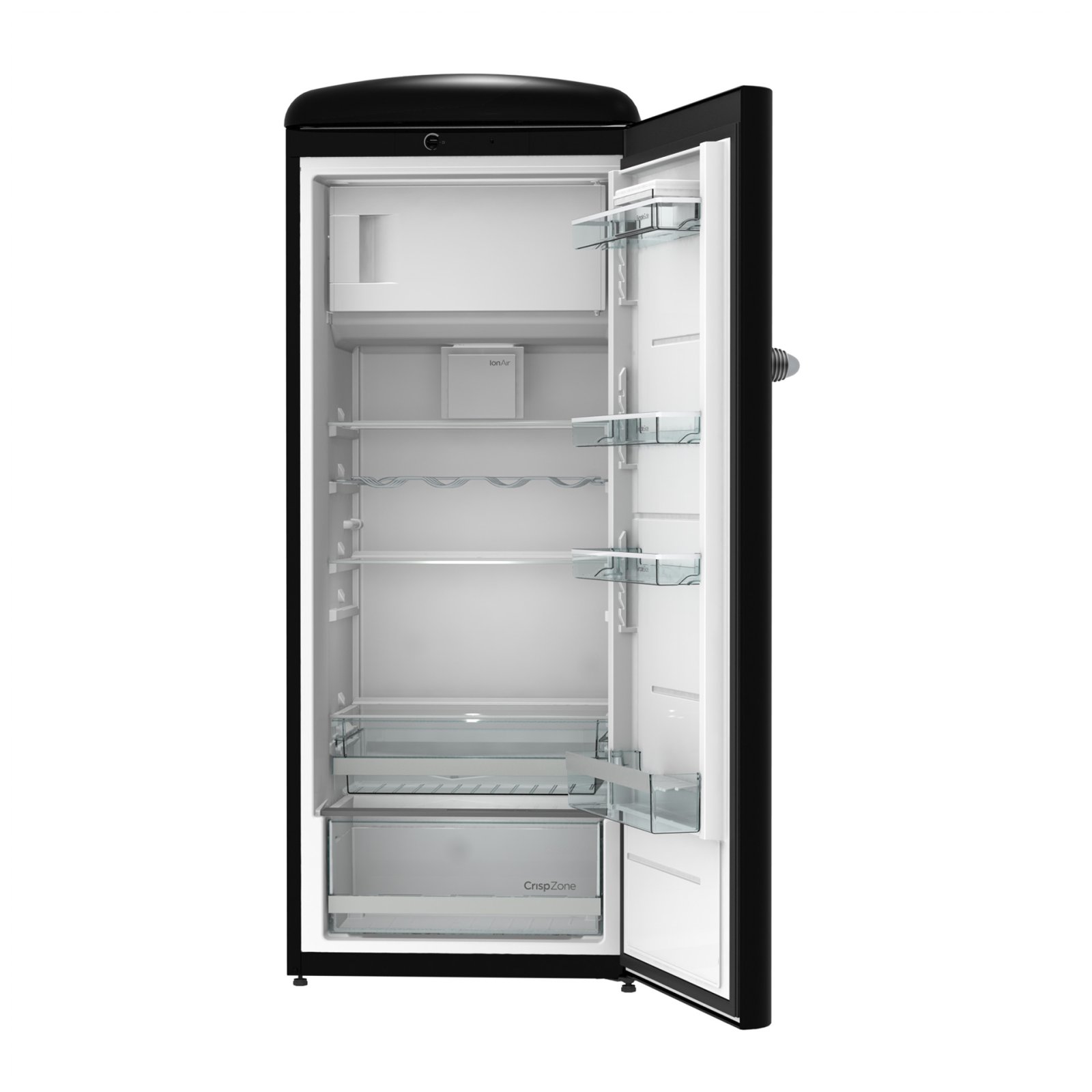 Gorenje Retro Collection, Cooler, 154x60cm. Black. Energy class E. 254L (229 fridge/25 freezer), 40dB, IonAir with DynamiCooling for clean air in the fridge. CrispZone with Humidity Control to keep fresh fruit and vegetables in the fridge. Right opening.