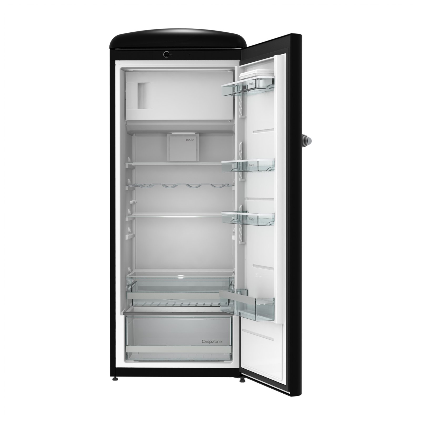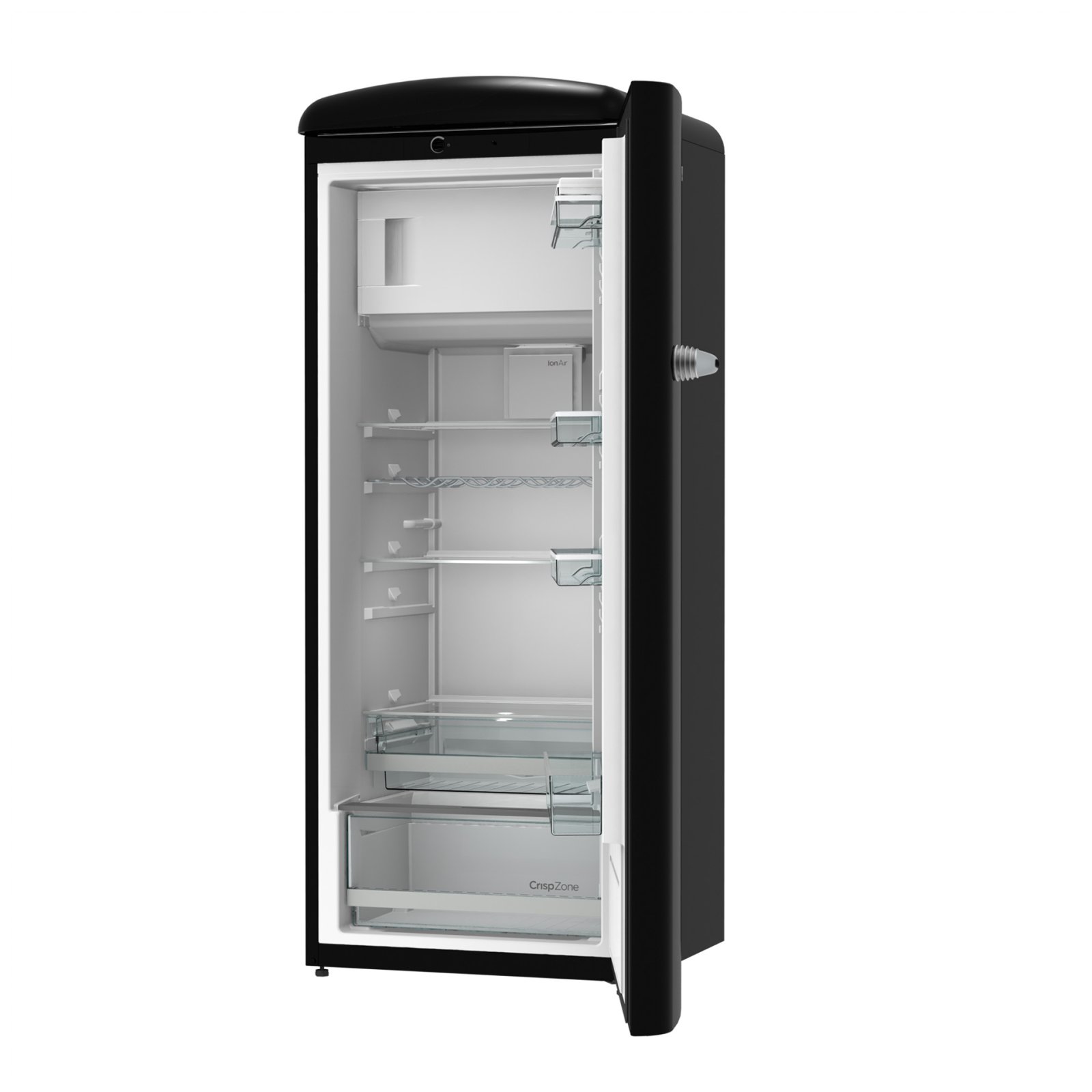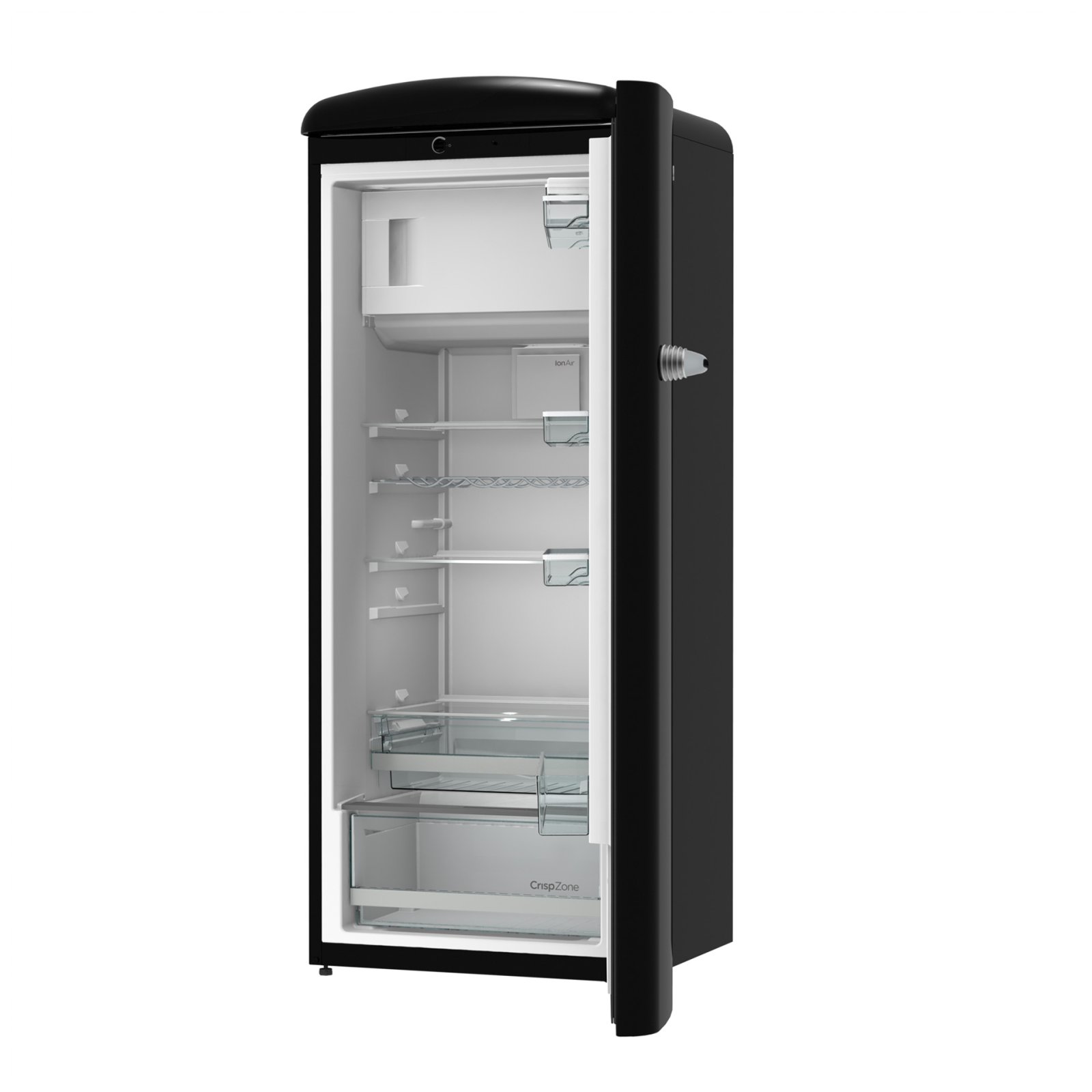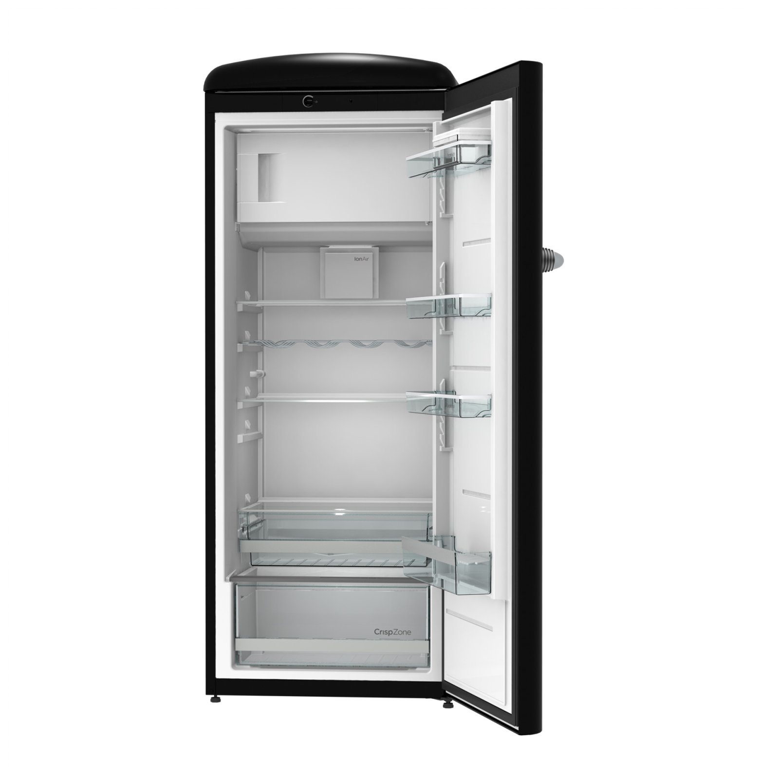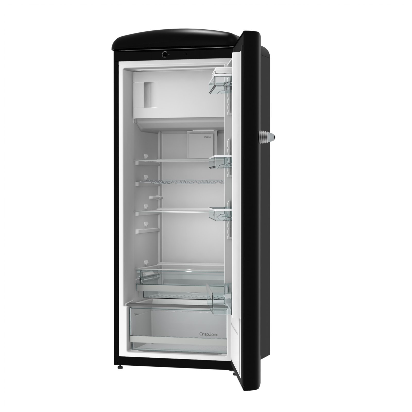 Gorenje Retro Collection, Cooler, 154x60cm. Black. Energy class E. 254L (229 fridge/25 freezer), 40dB, IonAir with DynamiCooling for clean air in the fridge. CrispZone with Humidity Control to keep fresh fruit and vegetables in the fridge. Right opening.