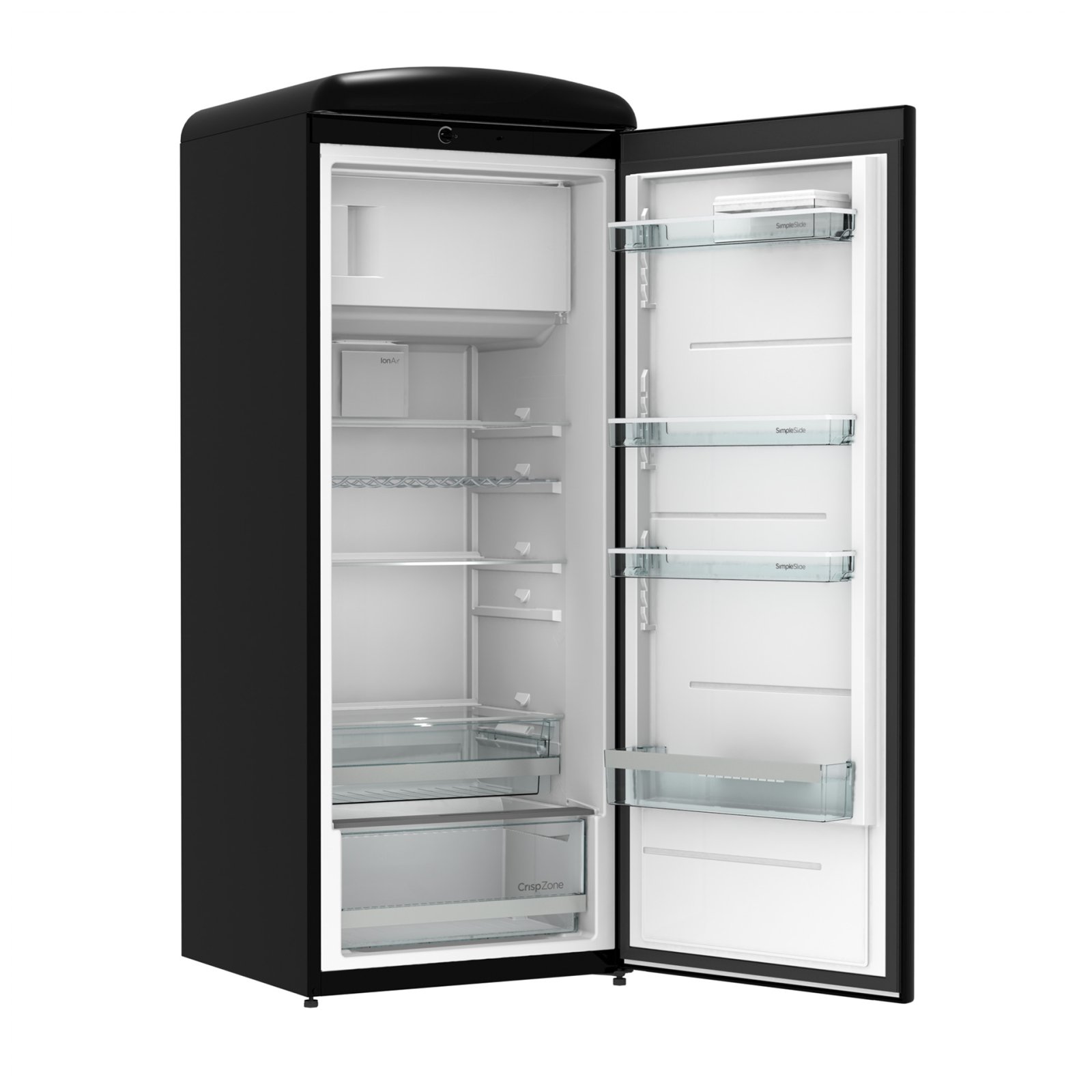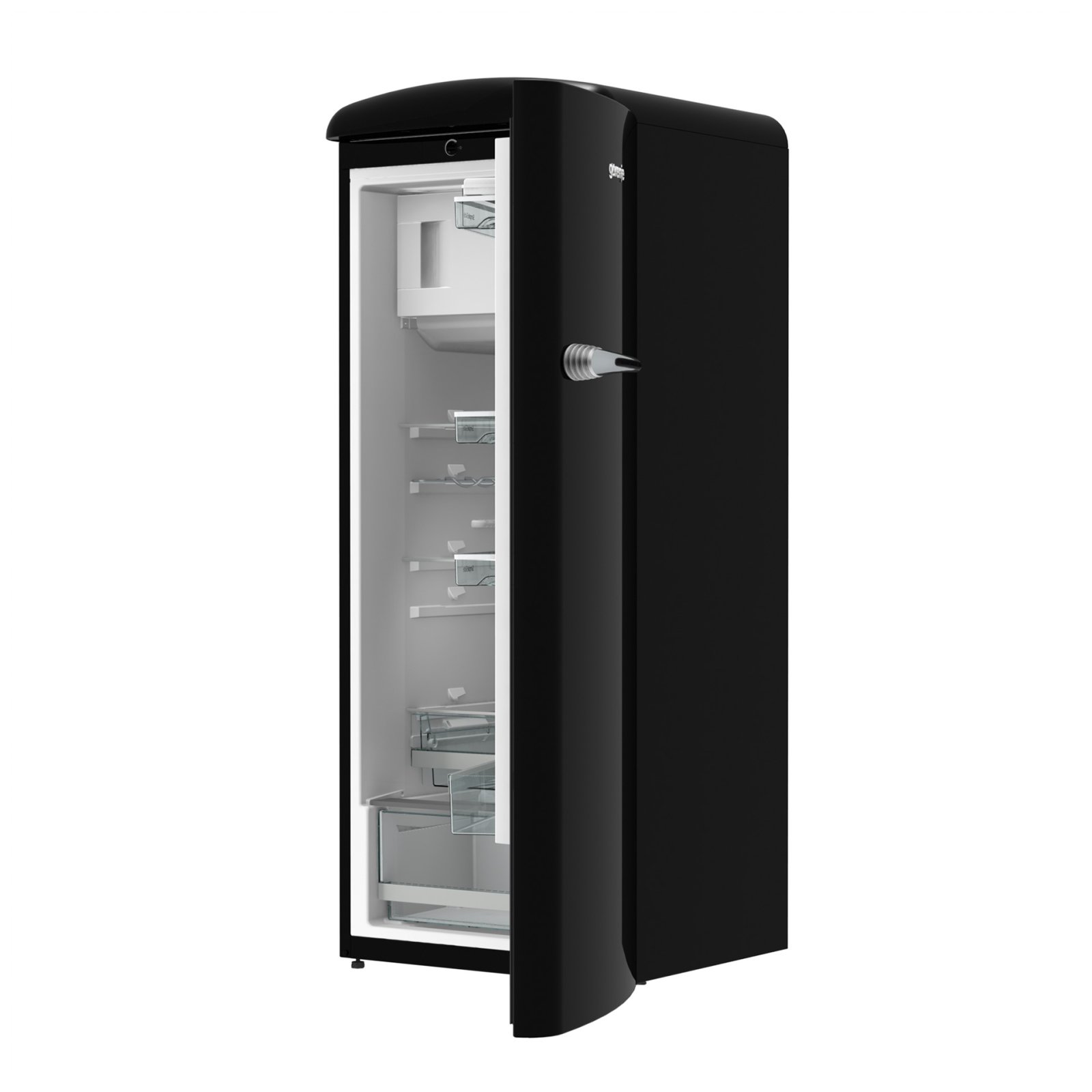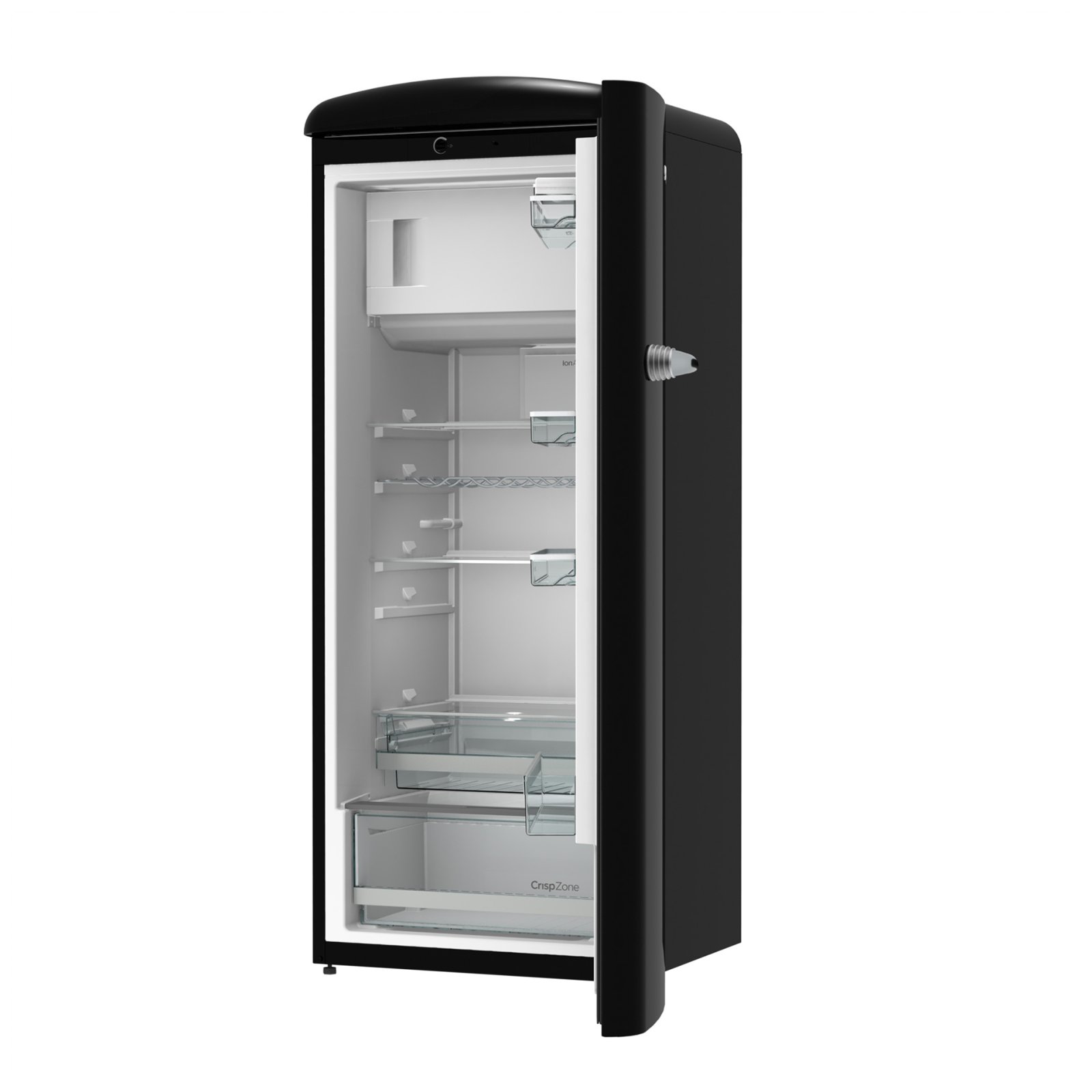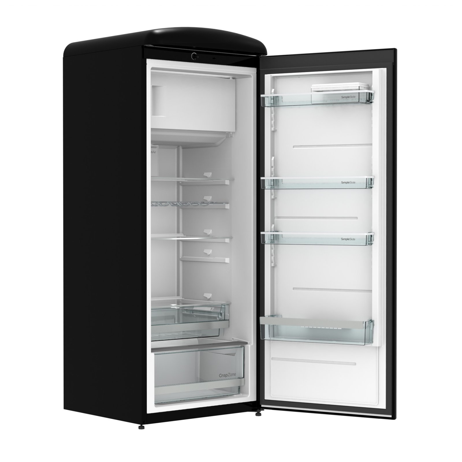 Gorenje Retro Collection, Cooler, 154x60cm. Black. Energy class E. 254L (229 fridge/25 freezer), 40dB, IonAir with DynamiCooling for clean air in the fridge. CrispZone with Humidity Control to keep fresh fruit and vegetables in the fridge. Right opening.