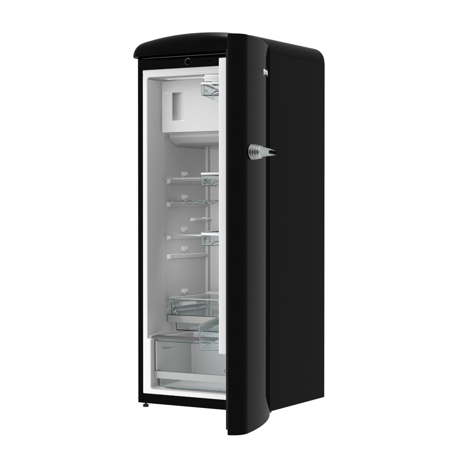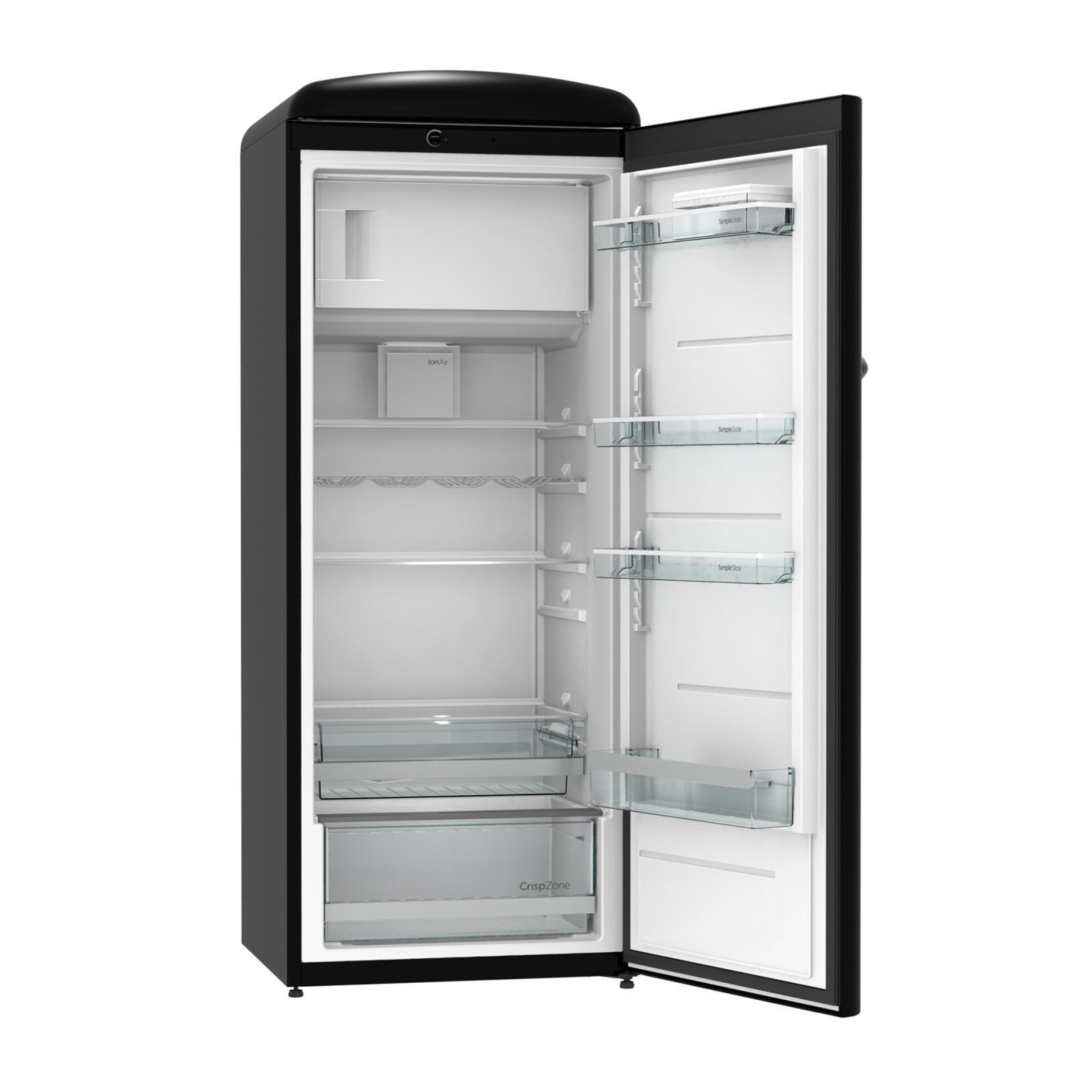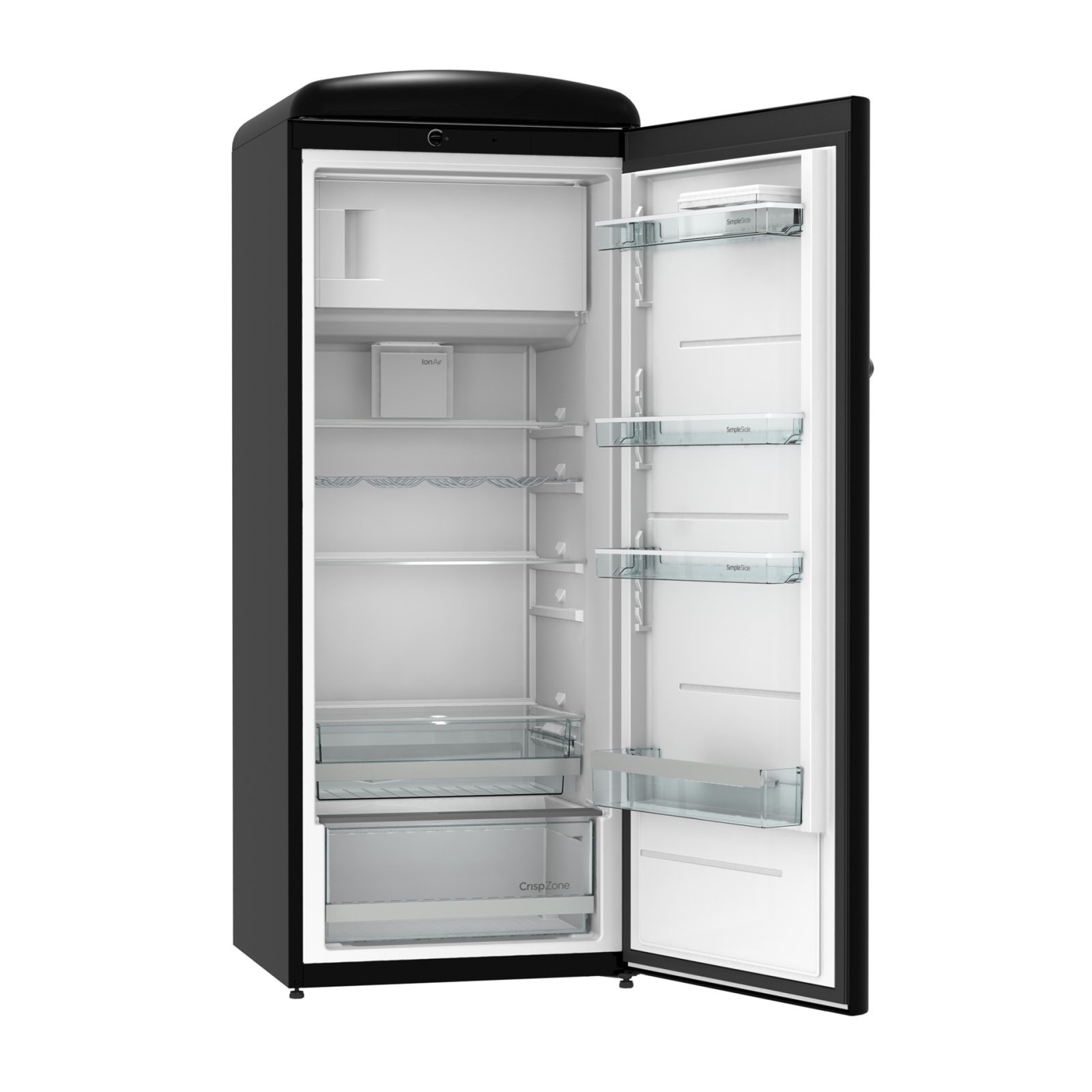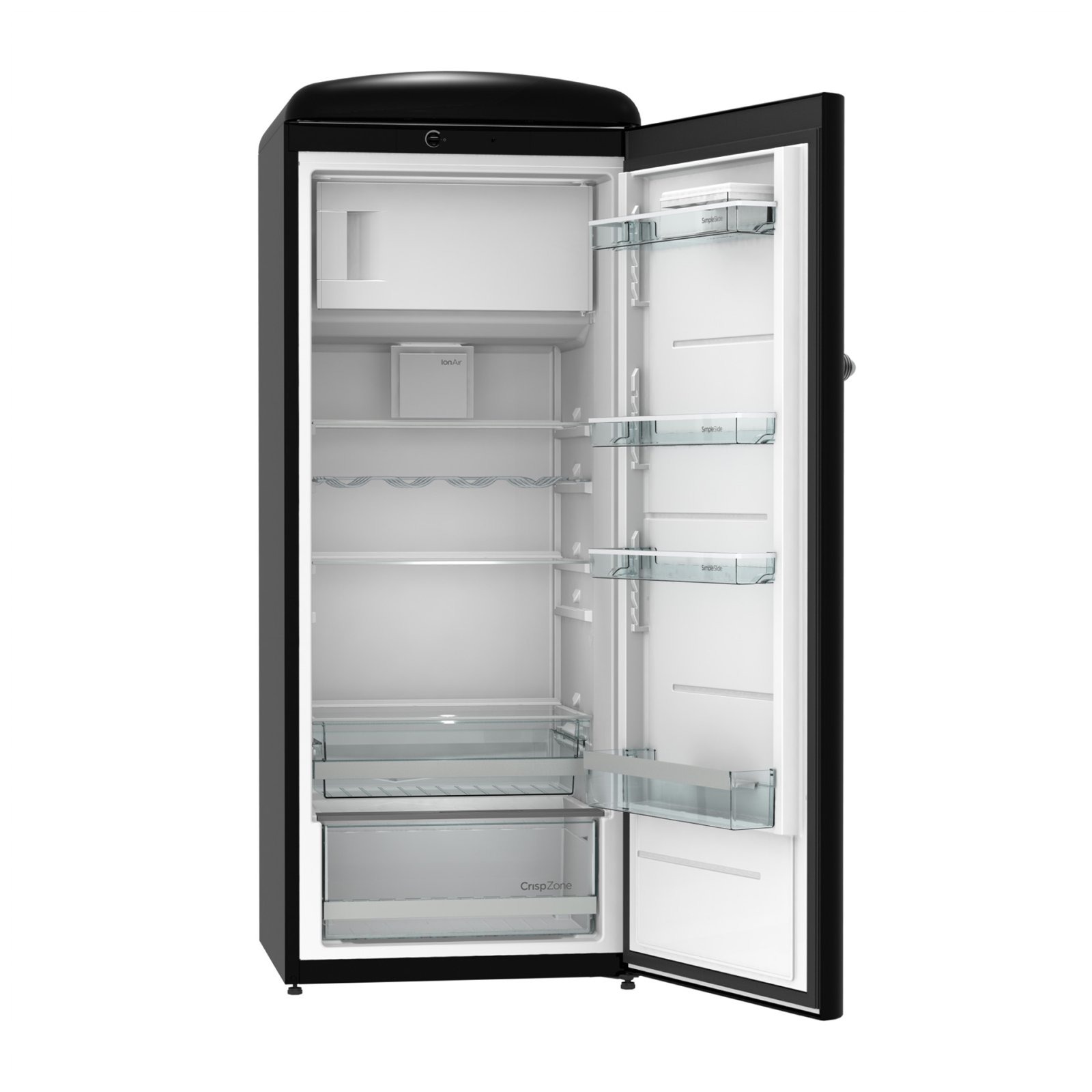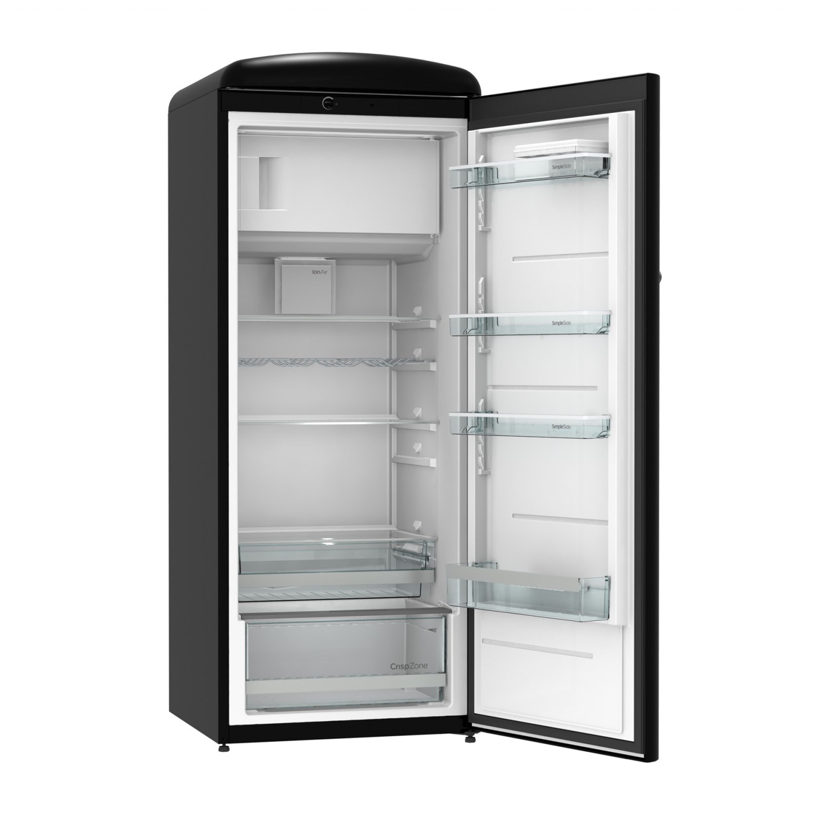 Gorenje Retro Collection, Cooler, 154x60cm. Black. Energy class E. 254L (229 fridge/25 freezer), 40dB, IonAir with DynamiCooling for clean air in the fridge. CrispZone with Humidity Control to keep fresh fruit and vegetables in the fridge. Right opening.