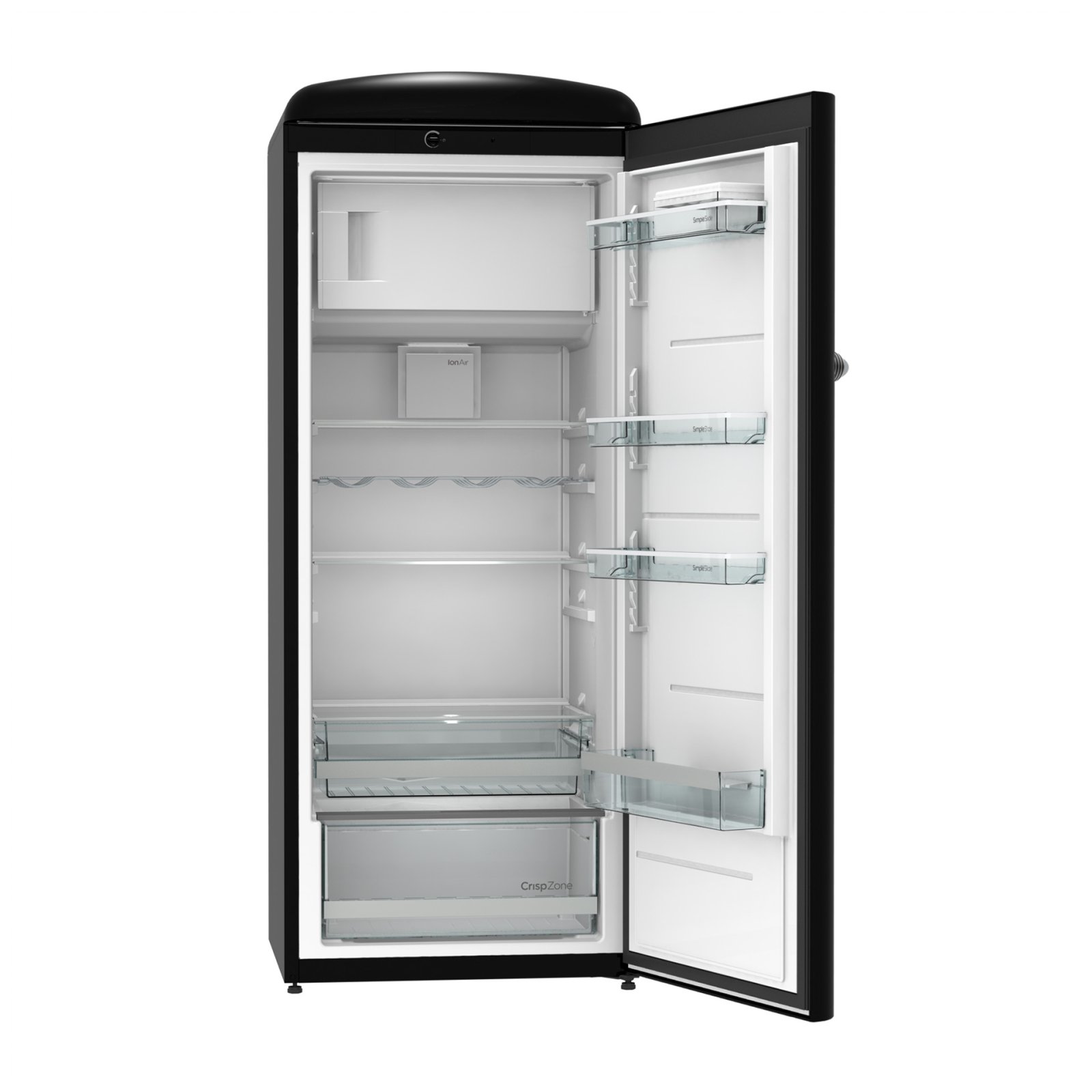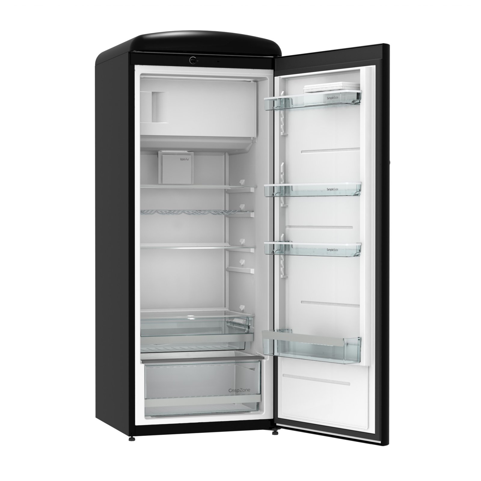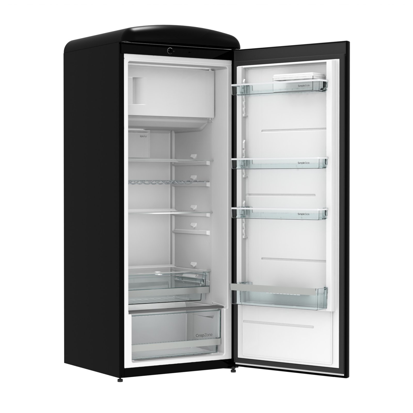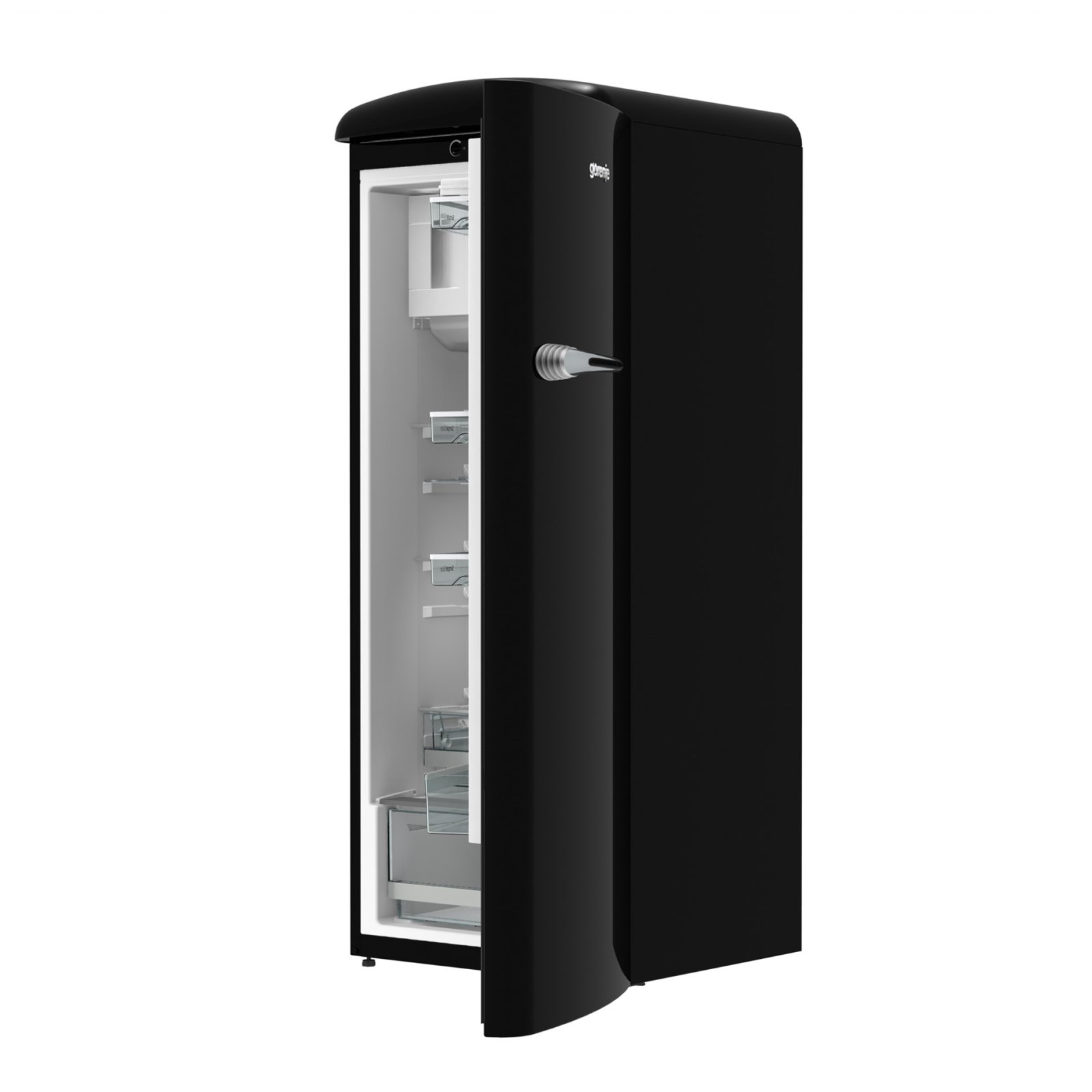 Gorenje Retro Collection, Cooler, 154x60cm. Black. Energy class E. 254L (229 fridge/25 freezer), 40dB, IonAir with DynamiCooling for clean air in the fridge. CrispZone with Humidity Control to keep fresh fruit and vegetables in the fridge. Right opening.