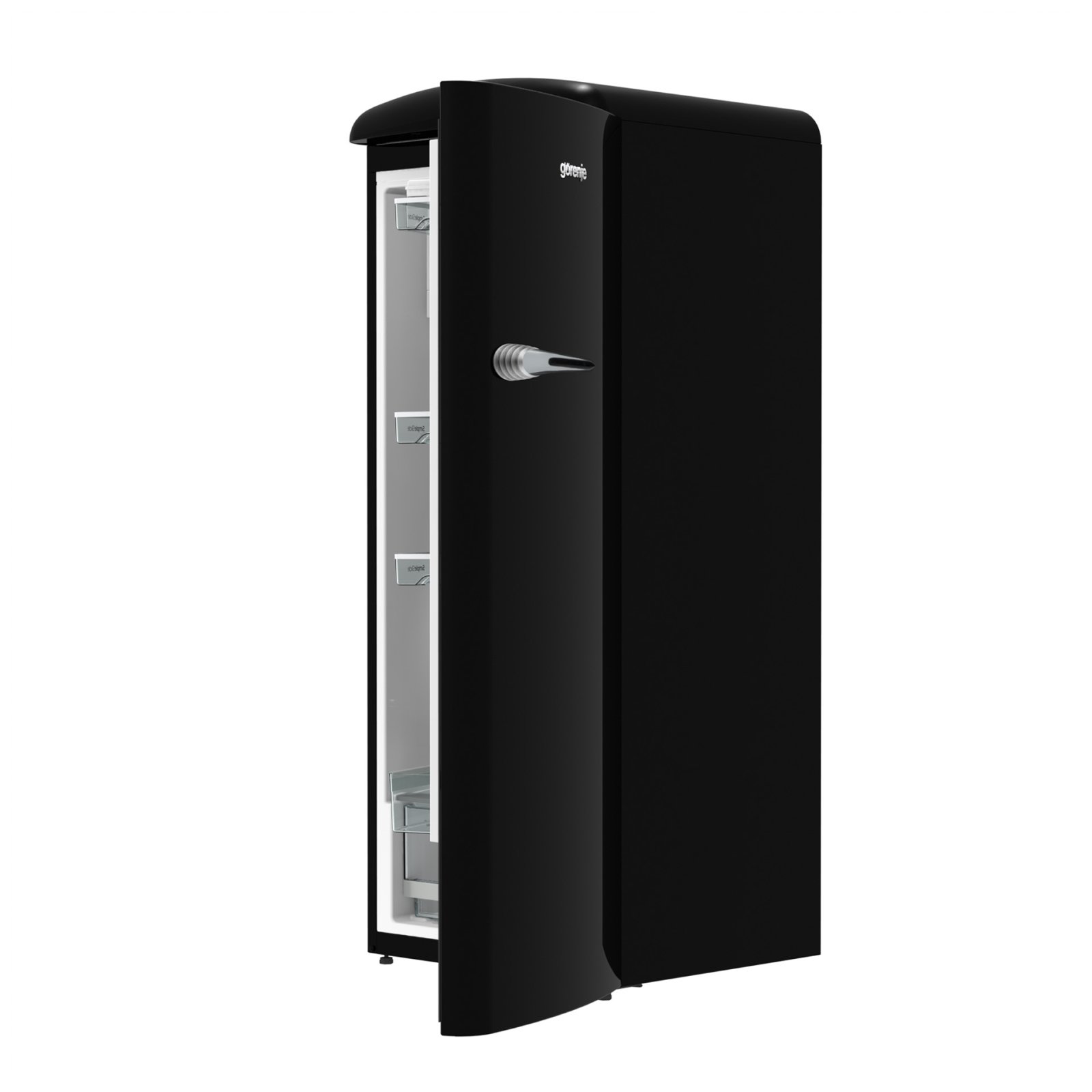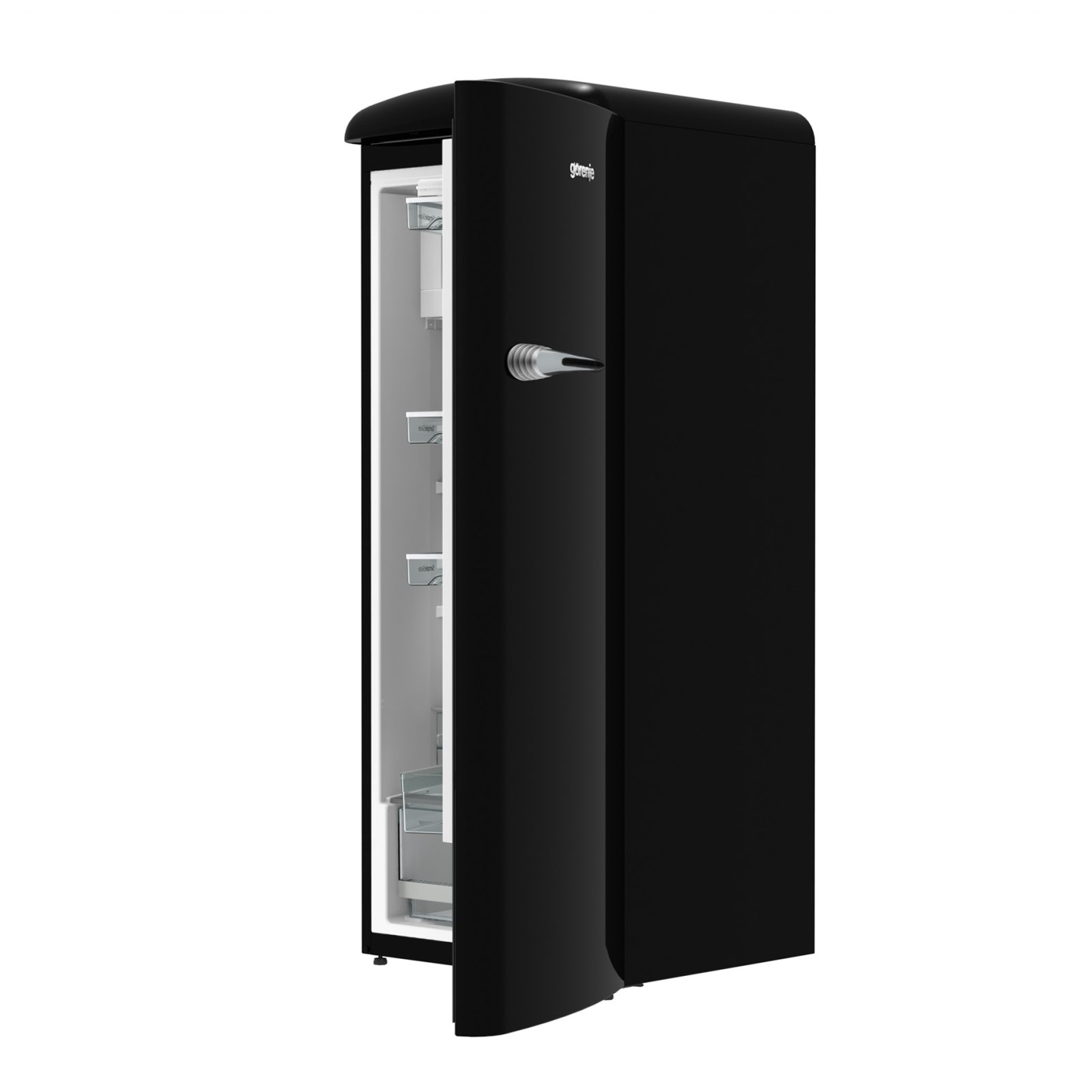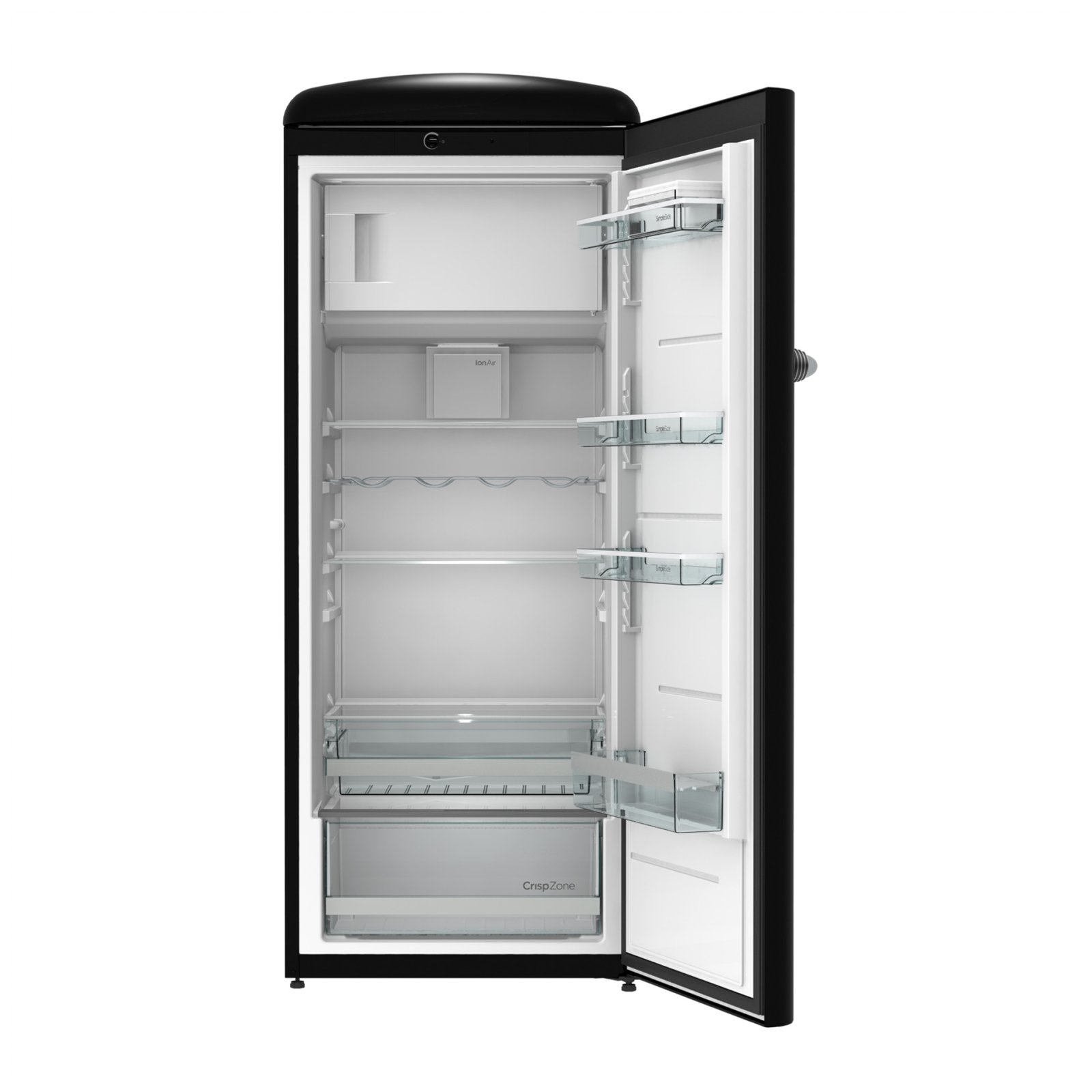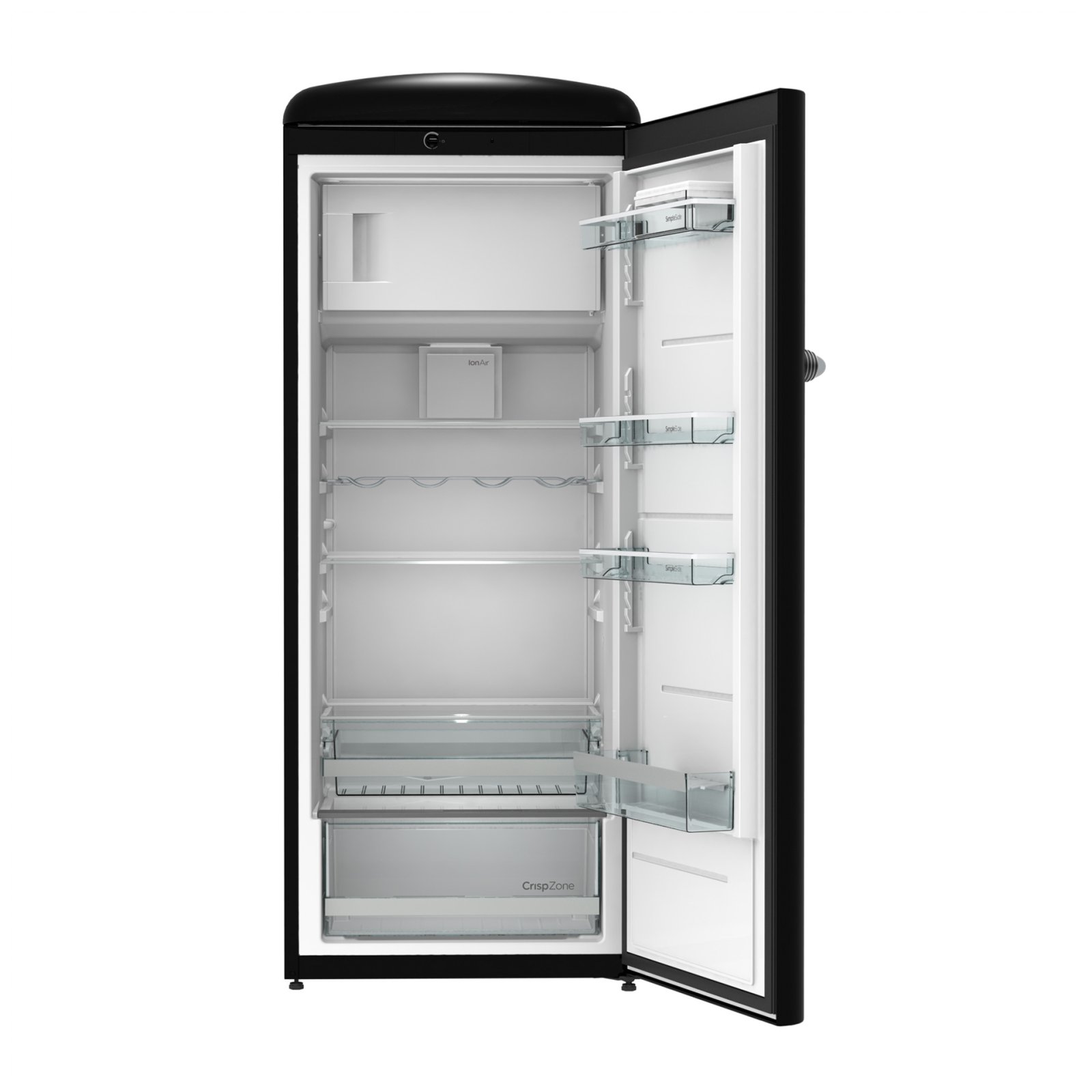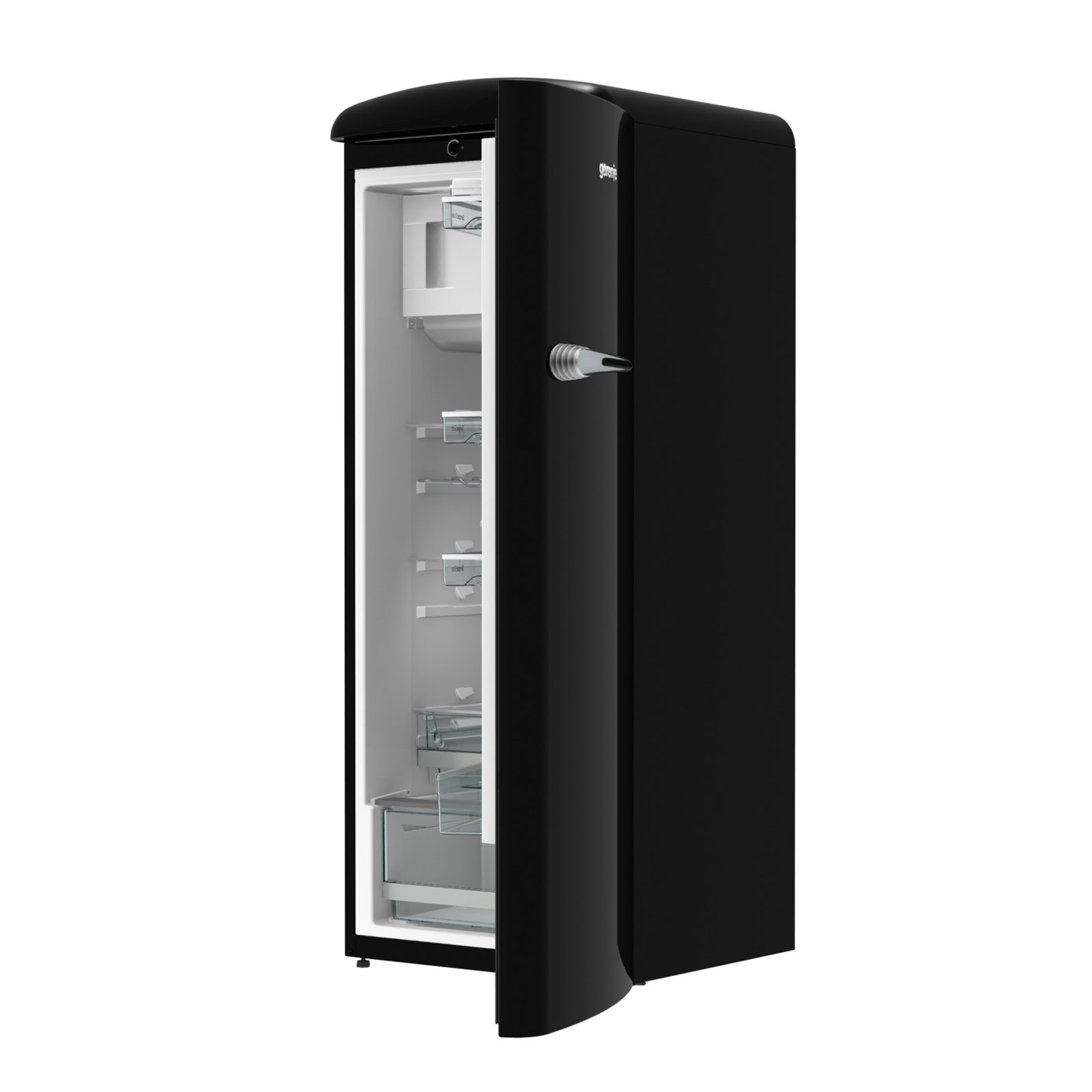 Gorenje Retro Collection, Cooler, 154x60cm. Black. Energy class E. 254L (229 fridge/25 freezer), 40dB, IonAir with DynamiCooling for clean air in the fridge. CrispZone with Humidity Control to keep fresh fruit and vegetables in the fridge. Right opening.